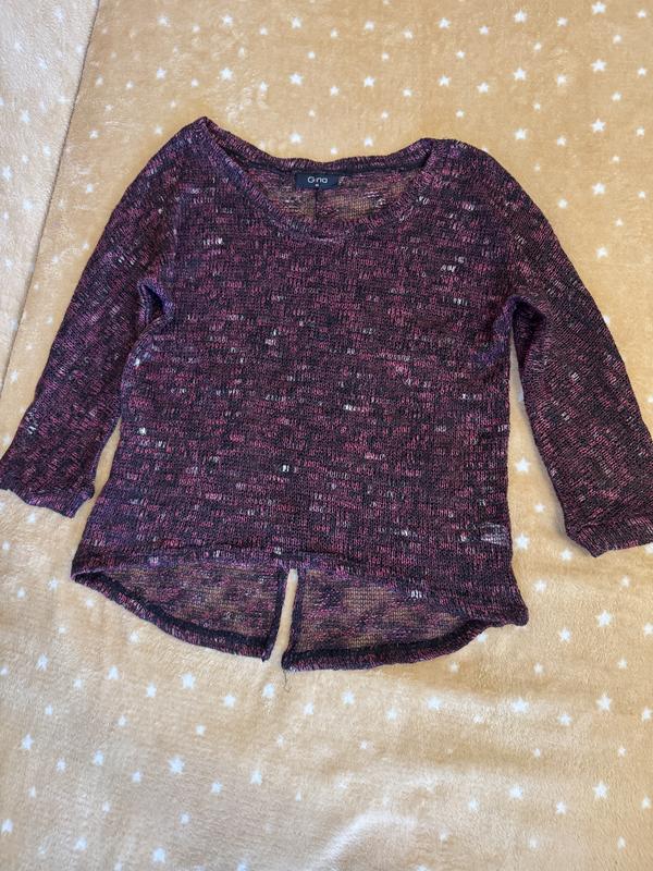 Спинка подовжена,просвічується. В ідеальному стані. Заміри: довжина (перед/зад) 51/62, ширина 49, рукав тричверті. Вона йде як оверсайз.
