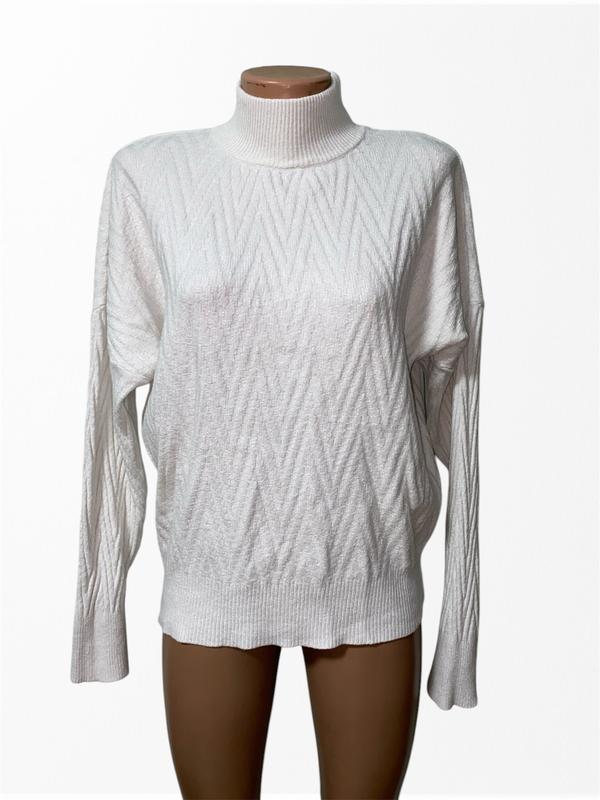 В ідеальному стані. Без дефектів, ковтунців та слідів зносу. Дуже теплий і приємний до тіла. Розмін вказано М (12), але по факту йде на нашу повномірну М і L. Заміри: по грудях по низу плечі приспущені довжина рукава від плечевого шва довжина кофти висота горловини