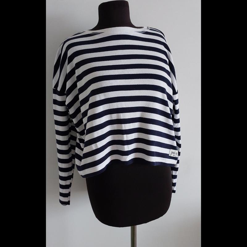 Стильна смугаста кофтинка, розмір М Вільного крою, дуже ефектно виглядає! Напівобхват грудей — 60 см Довжина — 50 см Зручна, легка та модна — ідеальний варіант для будь-якого образу.