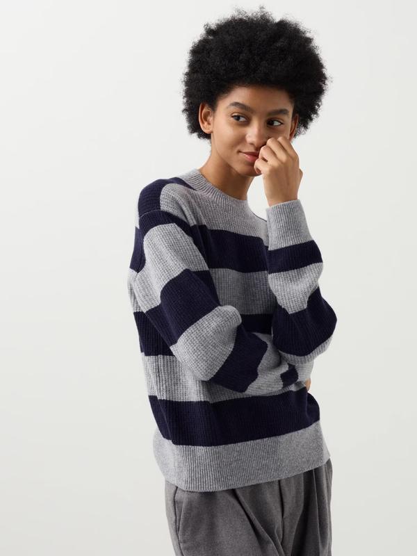 Состав: 100% шерсть Lambswool Crew Neck Jumper (Stripe) мягкая, теплая 100% овечья шерсть высшего сорта вертикальные линии вязки акцент - широкий ребристый воротник узор в широкую полоску