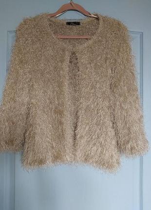 Кофтинка в ідеальному стані. В'язана з ниток "травка" з люрексрвою ниткою. Дуже добре тягнеться!!! Колір бежевий. довжина 51 рукав три чверті 46 плечі 42/43