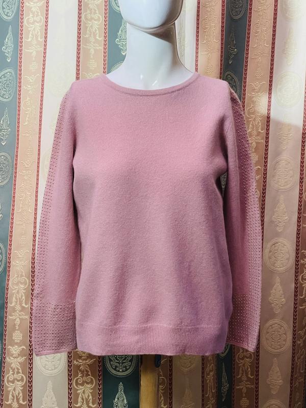 Пудровий колір, реальний на перших 3-х фото, прикрашений металевими бусинками Рукав від горловини 62 см ПОГ 48 см Довжина 56 см