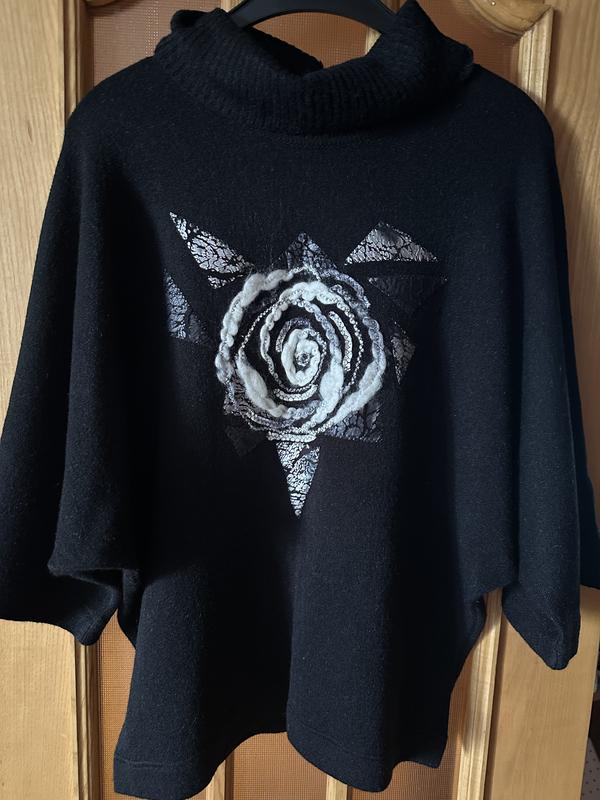 Джемпер новий,60 відсотків вовни.Довжина 62см,обʼєм грудей до 120см.Фасон летюча миша.Рукав 3/4