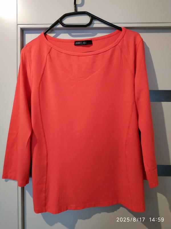 Тонкий трикотажный джемпер лонгслив от Marc Cain. Премиальный бренд качественной одежды. Цвет ближе к лососевому. Длина - 55, плечи 39, под мышками 47, рукав - 44. Дефектов нет.