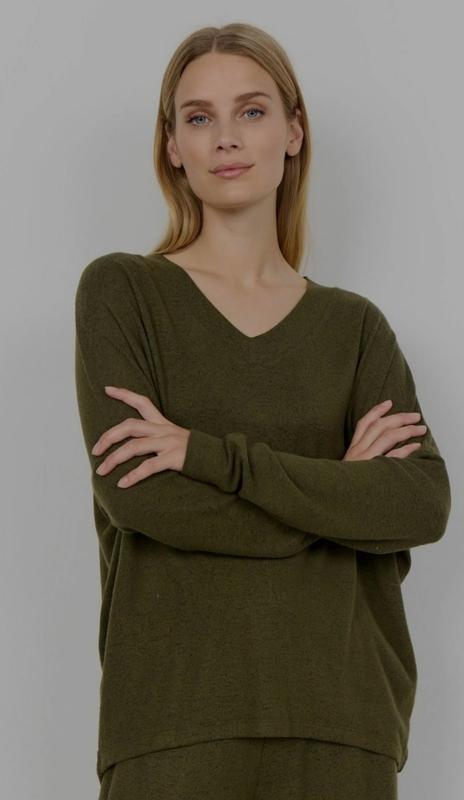 Состояние новой вещи. Очень мягкий и приятный к телу. Состав на фото. Длина 61/68, пог. 69, плечи спущены, рукав от горловины 74, полуобъем по низу 59. Цвет оливковый.