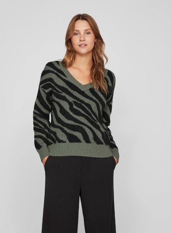 Свитер из коллекции Vila 14076461. С острым вырезом горловины и узорчатой вязанной тканью. - это изделие частично изготовлено из переработанного полиэстера. - Свободный крой. - Длинные рукава. - Спущенные плечи. - Ребристая отделка. Состав 40% полиамид, 30% переработанный полиэстер, 20% вискоза, 10% полиэстер 7600036701860