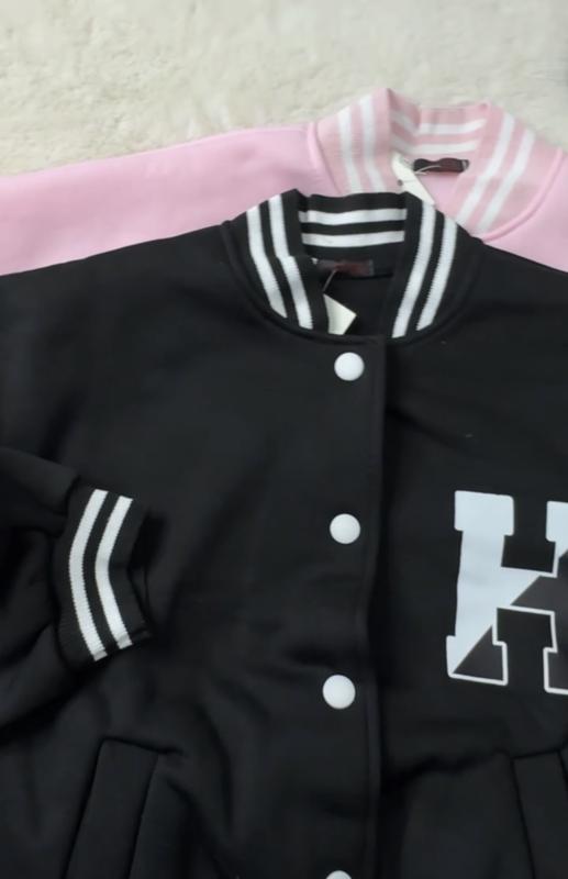 ✔️Реал 🌸Теплий бомбер мод:774 р4939 Розмір универсал :42-46 Тканина: тринитка на флісі відмінної якості Кольору:чорний с белым , ніжно рожевий з білим Кар ✨Точно як на фото ❤️Манжети та горловина декоративна рібана 💋виміри Довжина виробу -53 см ПОГ-58 см ПОТ-46 см