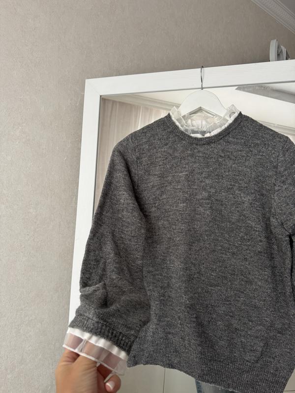 сірий джемпер Primark з круглим вирізом та мереживним коміром.