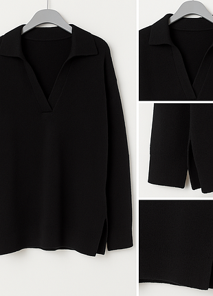 🖤 Чорний жіночий джемпер H&M Базовий джемпер із м’якої пряжі від H&M. Модель має відкладний комір і глибокий V-подібний виріз — поєднання класики та невимушеної елегантності. Фасон вільний, злегка подовжений, із боковими розрізами понизу. Матеріал м’який і приємний до тіла, чудово тримає форму. 📏 Орієнтовні заміри (приблизні): довжина по спинці — ~77 см напівобхват грудей — ~57,5 см ширина плечей — ~51 см довжина рукава — ~60 см ✨ Деталі: колір: глибокий чорний склад: 52% поліестер, 41% акрил, 4% вовна, 3% еластан вироблено в Камбоджі м’яка фактура, комфортна до тіла відкладний комір, V-подібний виріз низ і манжети з еластичним рубчиком 🔹 Стан: присутні сліди носіння ВАЖЛИВО ! Безпечна оплата тільки на Укрпошту та Meest