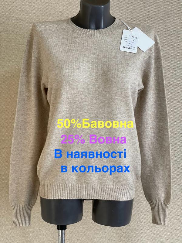 Шикарний,статусний,безшовний теплий джемпер,з вареною вовною,Мега Люкс Якість Красива,стильна,помітної якості,елегантна модель джемпера в цьому сезоні,Повністю безшовна(без стиків(швів)на рукавах,боках,плеча та горловини).Мега крута,статусна якість,-щільна,середньої товщини,тепла тканина,в складі якої,є варена вовна.Тримає тепло,приємна до тіла,м'яка,не колеться.Гарно сидить і виглядає на фігурі.Тримає форму.Модель в одному універсальному розмірі TU,підходить на S/M/L. ФОТО БАЖАННОГО КОЛЬОРУ НАДАМ В ОП. Кольори в наявності: 1.білий молочний 2.кремовий 3.бежевий світлий 4.бежевий меланж 5.сірий меланж 6.нюдовий(відтінок засмаги) 7.блакитний 8.чорний 9.винний 10.шоколад 11.лавандовий Розмір: TU, універсальний, на 44/46/48 Заміри в спокійному стані, без натяжки (тканина тягнеться,натяжка до 5-6см): довжина -60см плечі-42см рукав-63см ПОГ підмишки-51см ПОТ-48см ПОБ-47см ПО низу-манжета-42см,тянеться до 52см Склад: 50% хлопок, 25% вовна(варена), 25% поліестер,люкс якості. Можливий накладений платіж, доставка НП, передоплата 150 грн