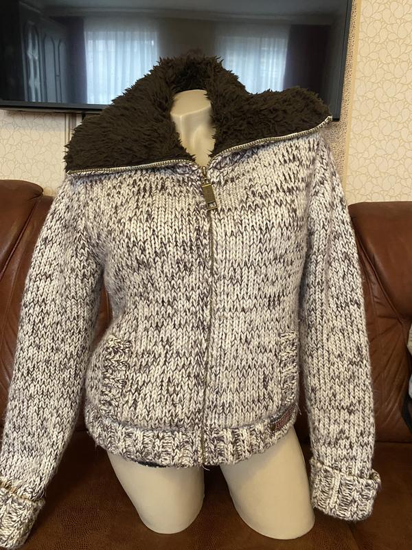 Дууууже тепла кофта, крупна вʼязка, високій комір, утеплена товстим штучним хутром, розмір М, невелика Л