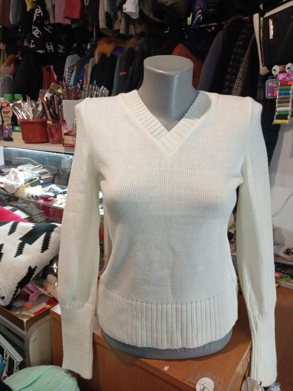 жіночий білий джемпер з V-подібним вирізом. Це в'язаний светр з довгими рукавами та широкою ребристою гумкою внизу. розмір S довжина 56 плечі 33 см по груди 42 см рукав 61см 2а/57