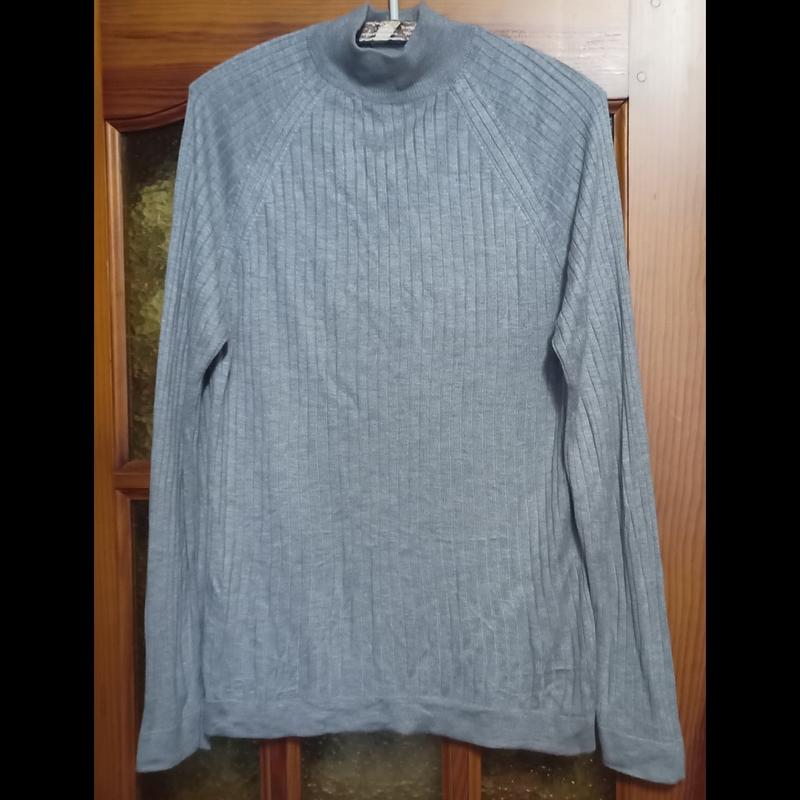 Джемпер жіночій, водолазка. Тонка в'язка в рубчик, добре тягнеться. Розмір вказано S, підійде на укр.44-46-48. Виміри: пог- 48, поб- 48, довжина- 69, рукав від горловини- 82.