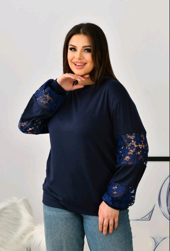 Розпродаж 21, 22, 23 листопада 👗Жіноча кофтинка вільного крою. 🔥Ціна: 480 грн. 📍Модель 049 т.синій ✅Тканина: плотна віскоза + кружево макраме. 🔖Розмір: 56-58. 📐Розмір 56-58: ОГ 126 см, ОС(манжета) 118-126 см, довжина 72 см.