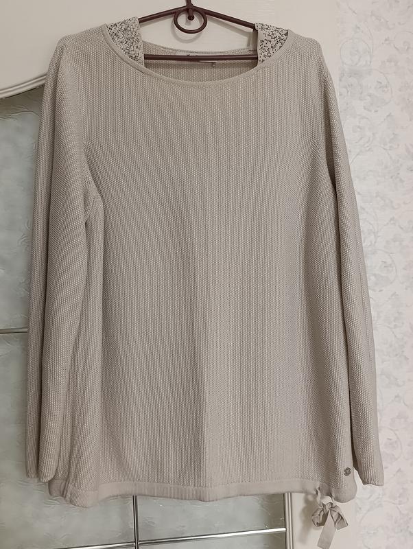 джемпер monari , ніжного, елегантного сірого кольору з маленькими додаванням беж. Довжина 66см, ПОГ 57см, ПОС 59см, рукав 59см.