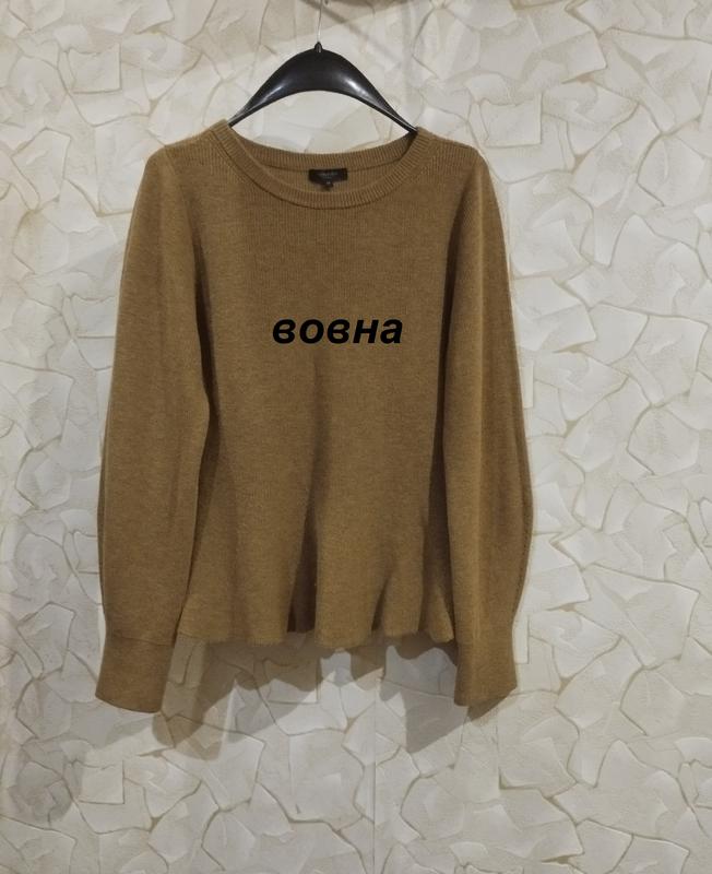 Джемпер нидерландского бренда Claudia Strater красивого цвета охры (горчично-беж), с баской, слегка расширенным рукавом. Мягкий шелковистый на ощупь трикотаж, хорошо тянется, теплый, состав - 50% шерсть, 50% полиамид. Размер указан М, 38, на мой взгляд ближе к S, ориентируйтесь на замеры: - плечи 35 см - пройма 41/60 см - талия 37 см - низ 57 см - длина 57 см - рукав 61/46 см В идеальном состоянии, без дефектов. Смотрите пожалуйста внимательно фото, их делали для вас и они являются частью описания товара. Смотрите и другие мои объявления, есть еще много интересного для всей семьи! ----------------------------------------------------------------------------- Доставка (подробнее о способах доставки смотрите в разделе "Обо мне") 4401