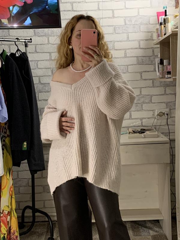 Рожевий в’язаний светр з V-подібним вирізом від ZARA, стан ідеальний! Мʼякий, приємний до тіла! 29% вовни 29% альпаки 42% нейлону Розмір XS, оверсайз, підійде до XL По грудях 67, стегна 66, рукав від горловини 74, довжина 71 см