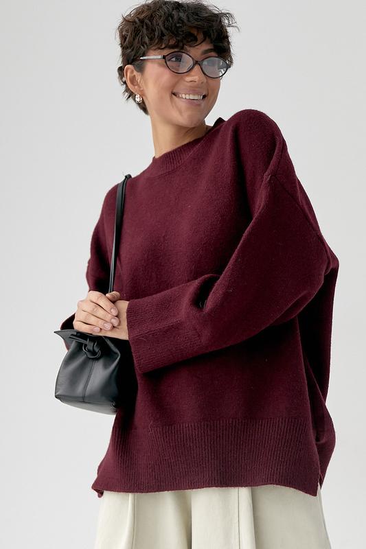 Вільний в'язаний джемпер із розрізами , теплий жіночий светр кофта