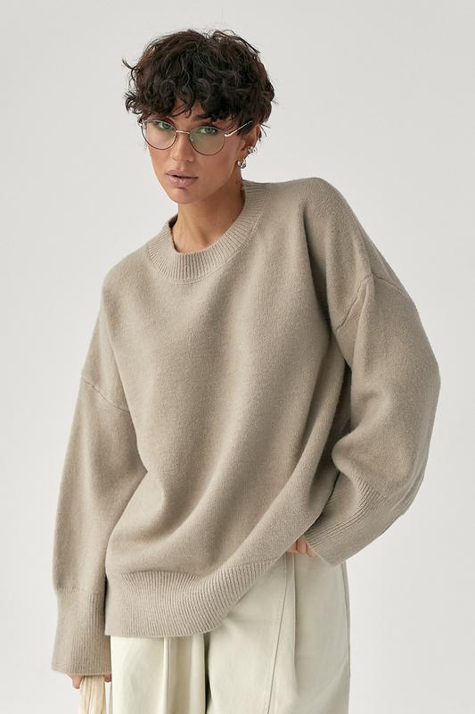 Вільний в'язаний джемпер із розрізами , теплий жіночий светр кофта
