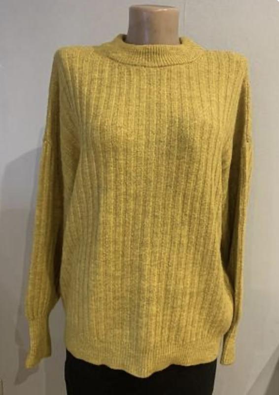Стильний брендовий джемпер приємного гірчичного кольору, мʼякий, приємний на дотик, акриловий трикотаж середньої товщини, обʼємна вʼязка, Сучасний фасон, ефектний, стан чудовий, гарно розтягується. По замірам розмірам XL-XXL. Пог 58 см, ПО низу 48-60 см, довжина від плеча 60 см, плечі спущені 65 см, довжина рукава від горловини 68 см