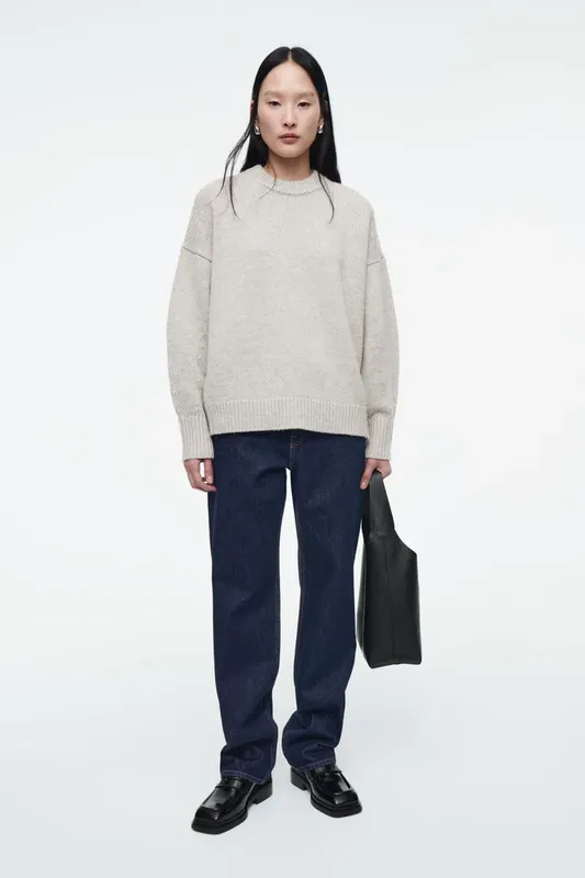 ❗️ світлі речі на примірку на пошті не надсилаю❗️ Розмір S 165/88А Джемпер виготовлений з щільної вовни. Він має вільний крій, потовщений круглий виріз, занижені плечі та закруглені рукави. Колір бежевий меланж. ➡️ S: - ширина під рукавами 65 - ширина по низу 58 - довжина 66 - рукав від горловини 76