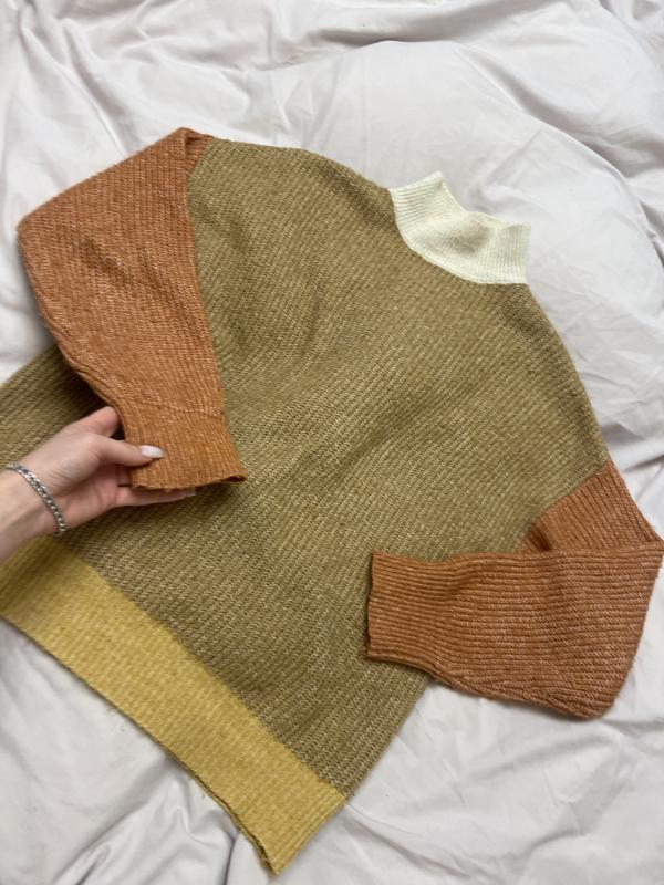 Кофта дуже тепла легка і приємна Була моя улюблена тому є трохи катульки Якщо є машинка не страшно Оверсайз