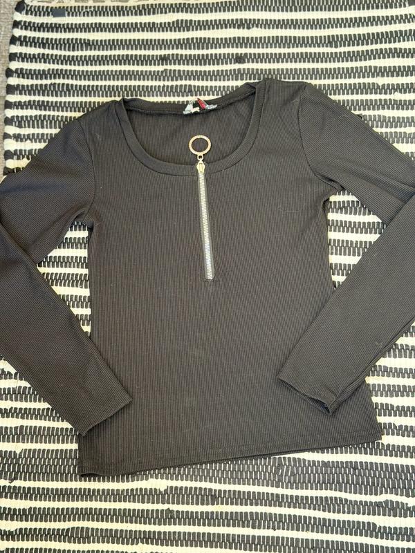 Стильна базова кофта чорного кольору з м’якого трикотажу в рубчик. Приталений крій гарно підкреслює фігуру. Родзинка моделі — блискавка спереду з декоративним кільцем, яку можна регулювати під настрій образу. Комфортна, приємна до тіла, ідеально підходить як для щоденних луків, так і для більш стильних