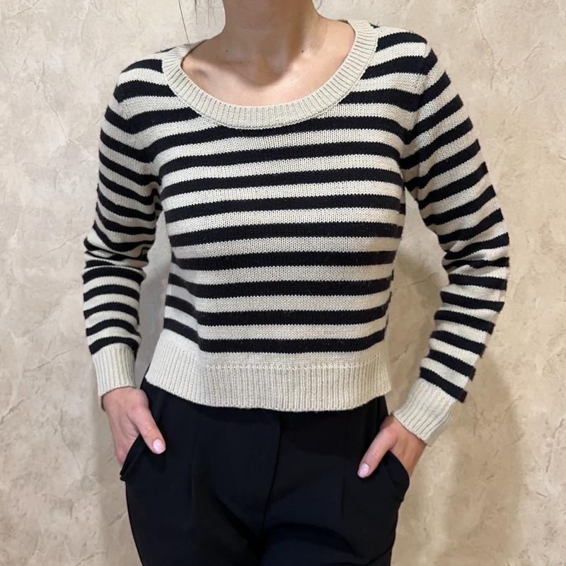 Стильний вкорочений джемперок від H&M Країна виробник Бангладеш 100% акрил На фото одягнений на ОГ 94 Довжина 50 ПОГ 48 Плечі 40 Рукав 60