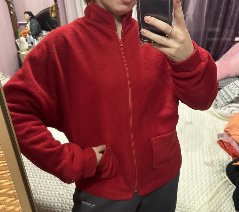Жіночий флісовий червоний джемпер на підкладці,шия-стійка,на замку та з карманами,розмір M-L