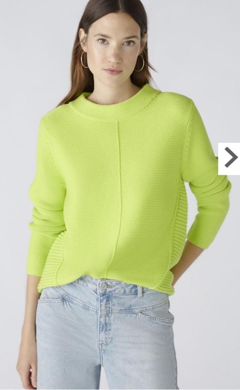 Стильный лаймовый джемпер от бренда Oui имеет современный свободный крой с эффектной ребристой текстурой и изящным закругленным низом. Благодаря премиальному составу из вискозы, хлопка и натурального шелка, изделие приятное к телу, красиво держит форму и выглядит очень благородно. Это идеальный демисезонный вариант, который сочетает комфорт повседневного свитера с элегантностью дизайнерской вещи. Замеры: пог- 56 длина- 73 указан размер- 40