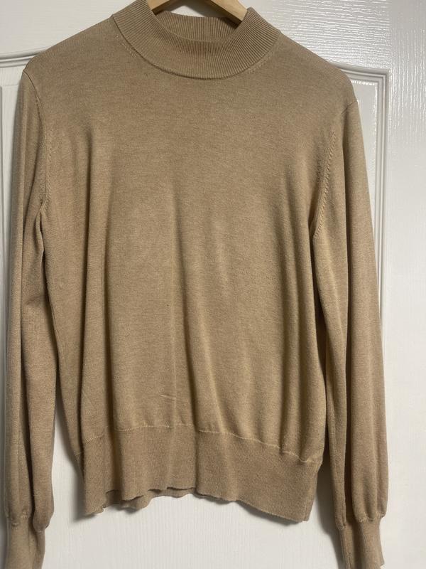 Свитер джемпер песочного цвета размер указан М, но можно и на L. Длина 68, пог 58, плечи 47, рукав 65