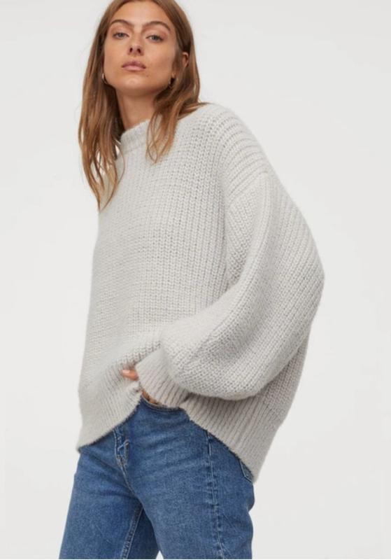 Вільний джемпер із м'якої пухнастої пряжі з додаванням вовни. Занижена лінія плеча, широкі довгі рукави зі звуженням донизу та рельєфна гумка вирізом горловини, низом рукавів і низом джемпера оверсайз,вказан s.