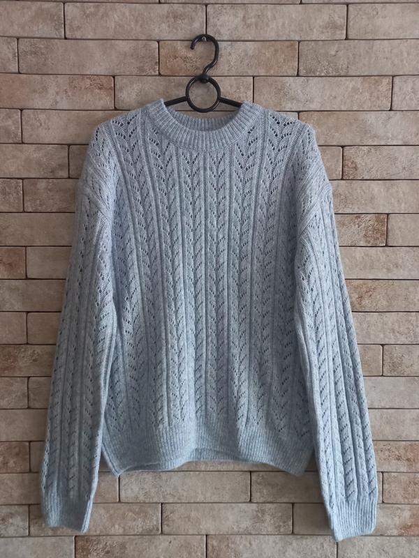 Жіночий ажурний джемпер. Модель напівприталеного силуету. Горловина акуратно прилягає до шиї, довгий рукав. Манжети та низ виробу — в'язання гумка. Стан ідеальний, без дефектів. Строк. підійде на розмір L-XL. Склад: 52% акрил, 48% — поліестер. Заміри: за ог см, рукав від горловини см, довжина см.