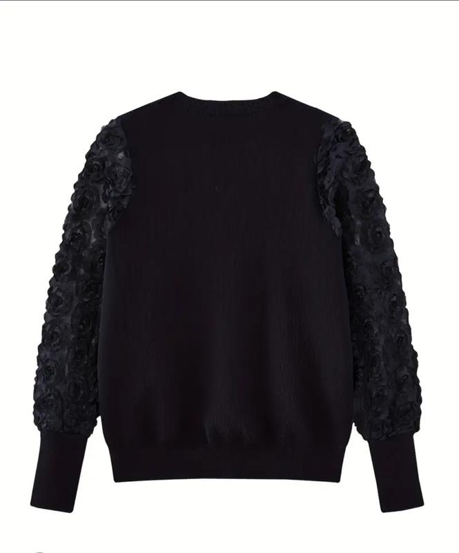 насичений чорний колір, фото засвічує, об'емні рукава метелики, підходить для всього. стан ідеальний, тканина віскоза та нейлон., манжети на рукавах та внизу. розмір вказано л, але і на м буде чудово заміри довжина 57, ширина 46 тягнеться, між плечами 37, саме плече 10, рукав 67. нарядне