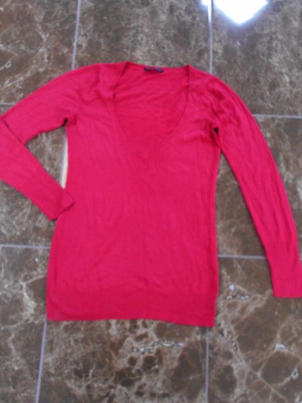 Червона кофта з великим вирізом декольте. Трохи видовжена