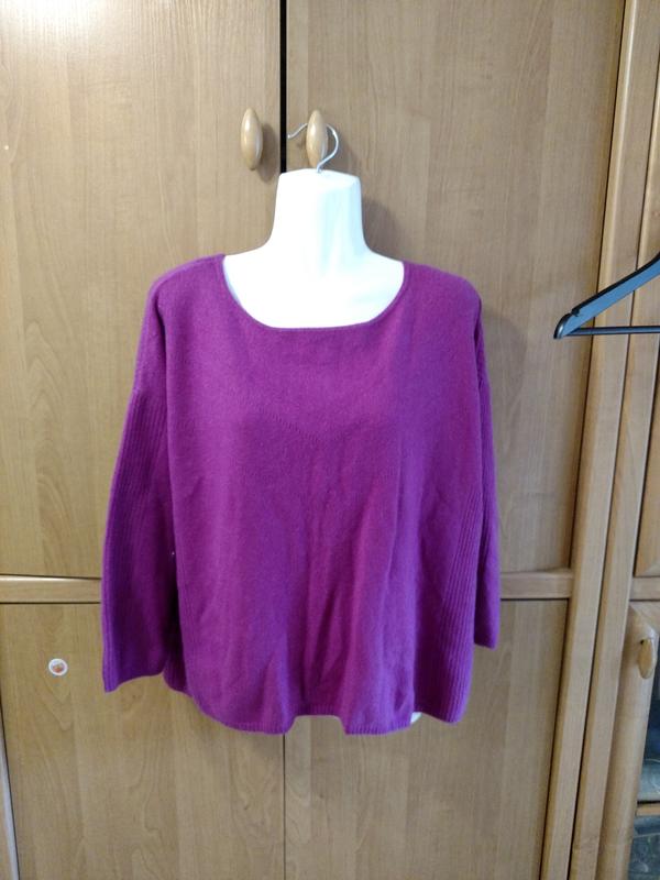 Ніжна,м'яка,гарний колір фуксії світлою,вільний крій,без пройм,рукав 3 чверті,ззади замок,дуже класна,розмір л,неї вільний крій,без пройм,оверсайз,пахви по 57-63див,ще при одяганні,тягнеться,шерсть м'яка,плече спущено на 20см,далі рукав 35см,всі разом рукав з плечем 53см,довжина кофти 53см.