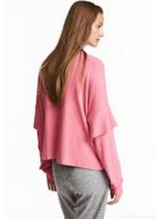 № 0546969003 Мерки: плечи 38см, пог 62см, длина 61см, рукав 54см Просторный джемпер тонкой вязки из мягкой пряжи с заниженной линией плеча и воланами сбоку; широкая горловина. Цвет: розовый меланж