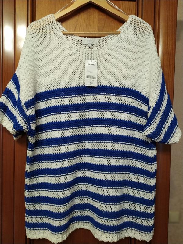 Пов'язана великою в'язкою з трикотажного шнура. Виміри в спокійному стані.Добре тягнеться. ПОгруди-72см,плечі+рукав-45см, довжина-72см.