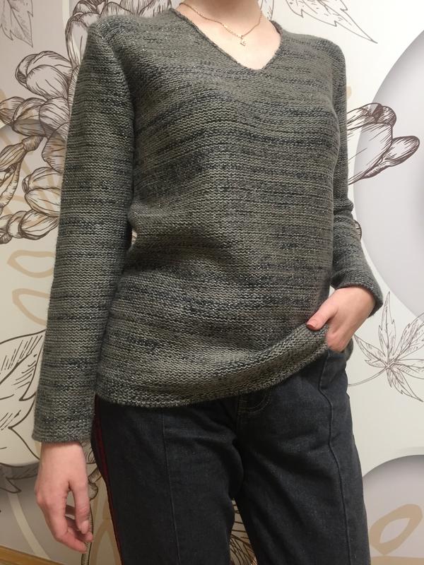 Джемпер-светр у гарному якості в хорошому стані без плям і подряпин, без каташек!. Довжина 65см Груди 96см від плеча до плеча 40см. Спина 39див. Рукав 59см. Прямого крою , м'який. Колір сіро - коричневий.