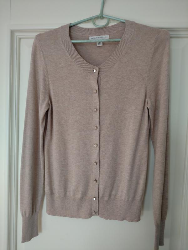 Дуже гарна кофта нюдового кольору. Супер якість. Гудзики шикарні - котяче око в металевій оправі. У складі 52% шовку.