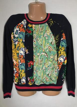 Джемпер з комбінованою тканиною з вовною Розмір 10uk ПОГ 50 см, спинка тягнеться Довжина 60 см Дефектів немає