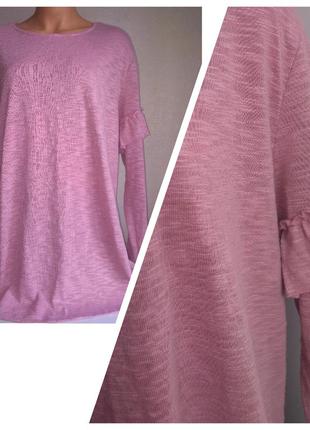 Розовая кофта с рюшами на рукавах. Целая, чистая. Слегка тянется поперек. Есть небольшая кашлатость, практически не заметная глазу и камере. На последнем фото показала. Цена окончательная, без торга. Размер 18. Замеры(плюс/ минус, на ровной поверхности): Длина от плеча до низа 75 см Ширина под мышками 57.5 см Плечи 45 см Рукав от плеча 57.5 см Длина по спинке 72 см Есть вопросы? Напишите мне!)