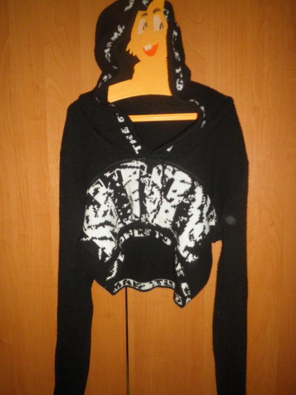 Тепле Болеро з капошоном. Колір чорний з білим малюнком. Розмір 42-44