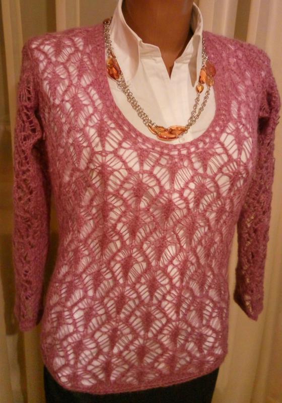 Вязаный свитерок (ручная работа,крючок).Обалденная вещь. Отлично сидит по фигуре, Прекрасно будет сочетаться с блузой, гольфиком, с маечкой и с любыми брюками.Мерочки по запросу.