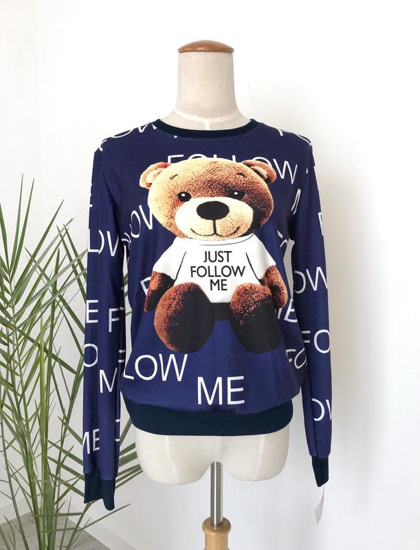 Класний світшот з ведмедиком один Розмір S/M Довжина 56 Плечі 39 в нерозтягнутому вигляді Ширина 48 в нерозтягнутому вигляді