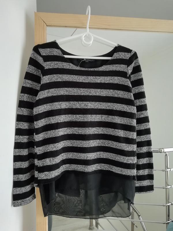 Класний джемпер в полоску з виставкою шифону Довжина 66_69 Рукав 60 Плечі 37 Ширина 46 Акрил