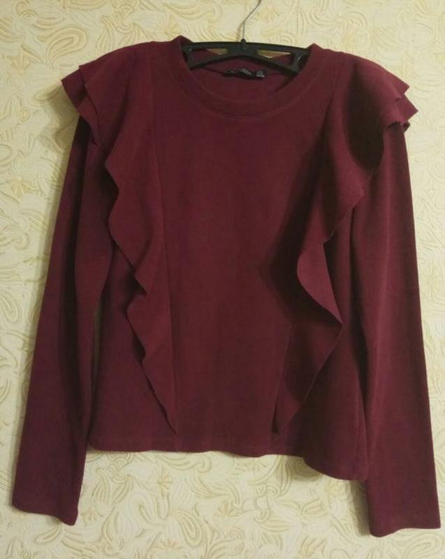 Джемпер, лонгслив 46-48 р-ру., гарного кольору марсала (фото 2),в актуальні рюши. Склад: котон, поліестер. Заміри: плечі 37 см.; рукав 63 см.; об.грудей 42 см.; по низу виробу 44 см.; довж.виробу 56 см. Перешлю після 100% оплати на картку. Відправлю Новою або Укр.поштою. За додатковою інформацією звертайтеся.