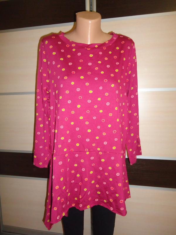 Указан размер L Длина - 67-68см, сбоку до 80см ПОГ - 53-66см ПОТ - 58,5 - 75см Рукав - 36см, от плеча - 51см Низ не обработан