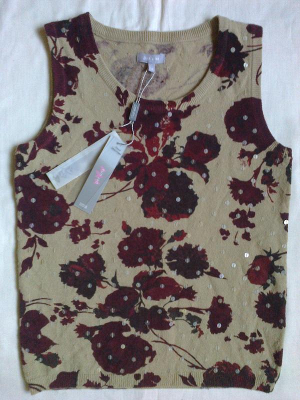 Висилаю речі після 100% оплати на мою карту Привата Вовняний жилет ( 100% lambswool) Per Una Прикрашений пайєтками Вказаний р 12 Заміри на фото (+ виріб тягнеться) В моїй ШАФЕ ще багато цікавих дрібничок, переглядайте