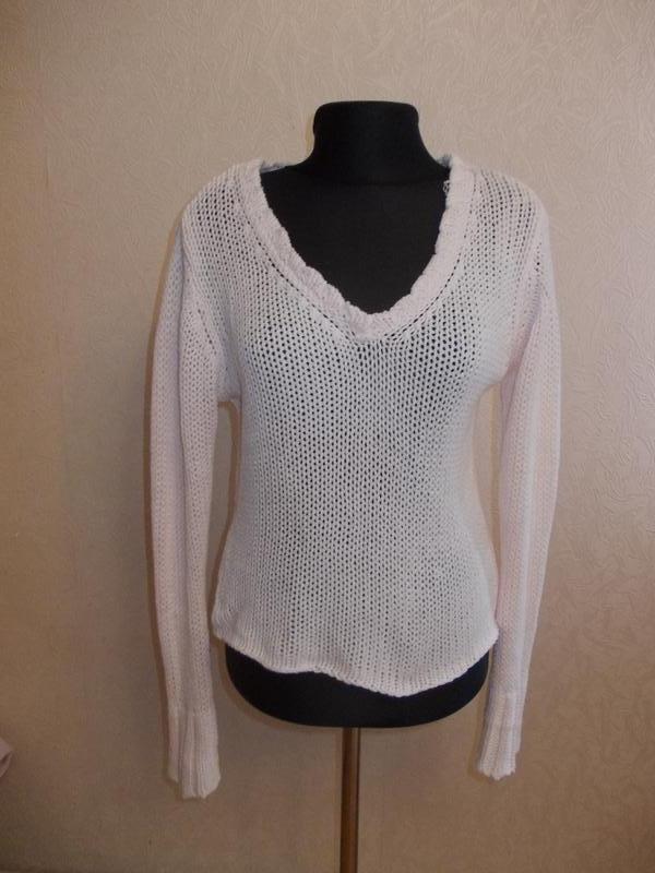 нежно-розового цвета,нитки хлопок 60%,40% акрил,мне кажется,что чуть растянут воротник.Размер указан 12.Длинна рукава 75см,кофты 62см.